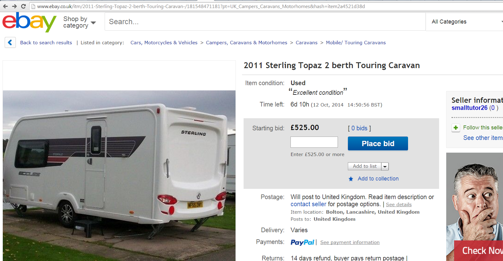 2011 Sterling Topaz 2 berth Touring Caravan EBAY FRAUD 06-Oct-14