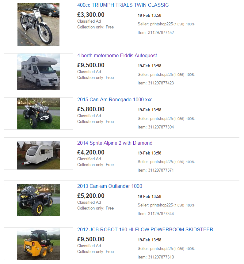 EBAY SCAM : 99 VEHICLES inc classic cars, caravans, tractors, motorcycles FRAUD ON EB